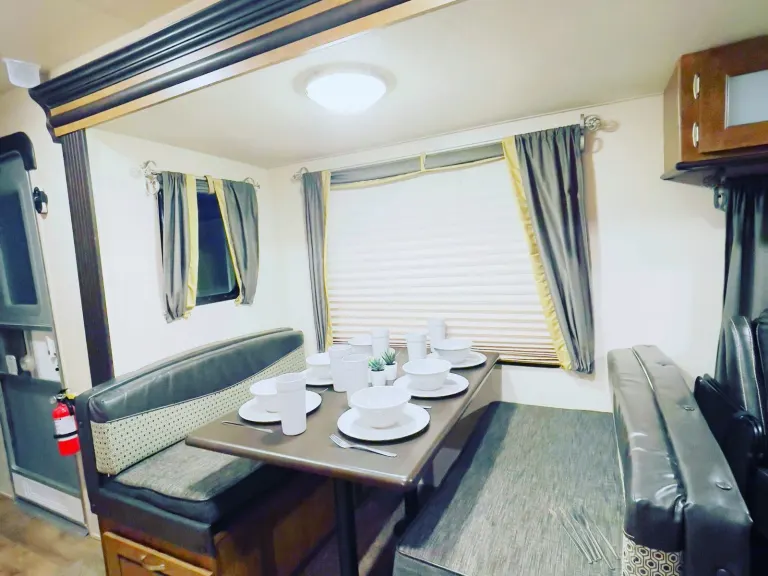 What's includedWe will provide all the essentials for your travel needs, include: pillows, fresh sheets, blankets, pots, pans, plates, cups, bowls, silverware, 2 paper towel rolls, dish soap, hand soap, hand sanitizer, 1 Clorox wipes, new dish sponge, dish drying rack, cutting board, knife sets, one box of trash bags, 3 RV bath tissues, 2 propane tank, cloth hangers, shampoo, conditioner, shower gel, tooth brushes set, bath towels, house slipper...... If you have questions for any items we may provide, just ask prior your reservation :)Other things to note1. Don't forget to filled up the Propane Tank before return