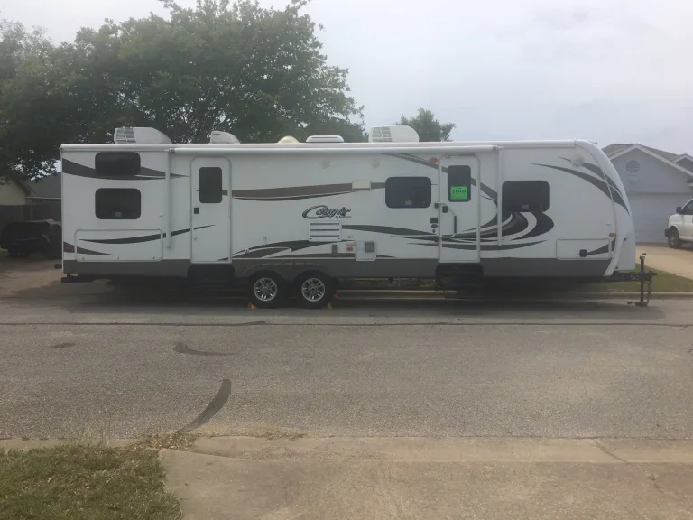 Well maintained travel trailer. Queen bed in front and bunkhouse in back. Bunkhouse has its own ac unit. Big bathroom, fold out couch and kitchen table converts into another sleep space. 2 grey water tanks, working awning and stereo.