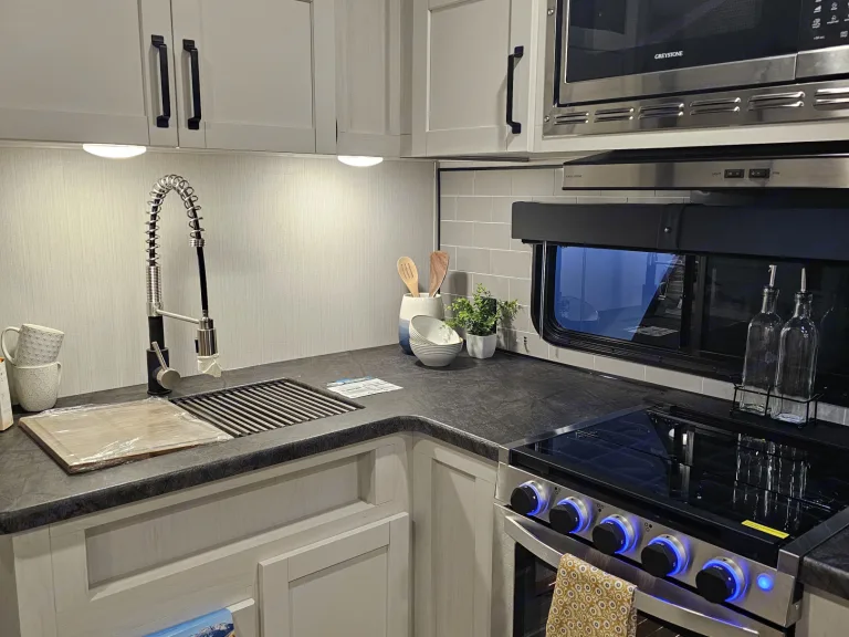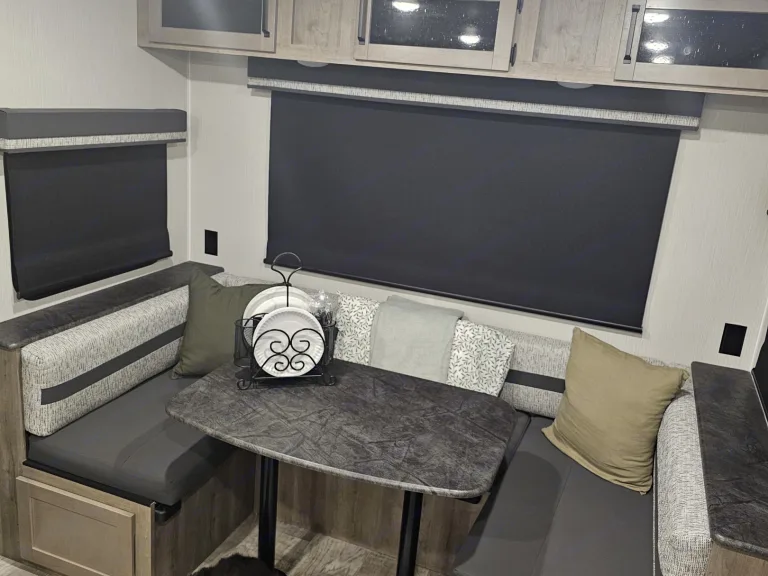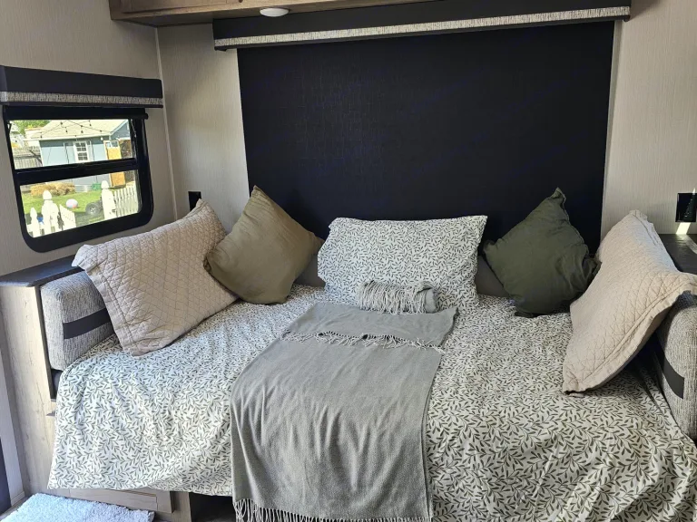 Brand new trailer. Many amenities. Furnished for cooking, including an outdoor grill and outdoor shower, lots of storage.This rig has all the things you would want in an overnight stay. 50Amp Service, 2 high output A/C Units, Large tanks, Dual 20lb Propane tanks, a beautiful awning with lighting, nearly kitchen size refrigerator and freezer, Double Sink with Sprayer nozzle, 2 Large Recliners, Outdoor Speakers and Shower, Outdoor Grill, Heavy duty hitch with Sway Bars, Large Shower with convenience seating, 2 Entrances with easy-lift stairs, Skylight with Exhaust Fan in bathroom, lots of storage spaces. We can offer an Inflatable Bed if you want to have extra kiddos on the floor, etc.