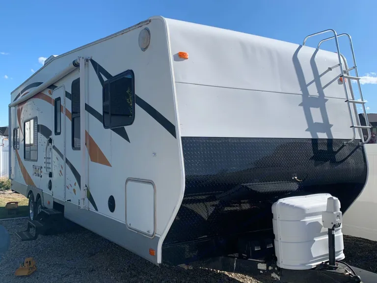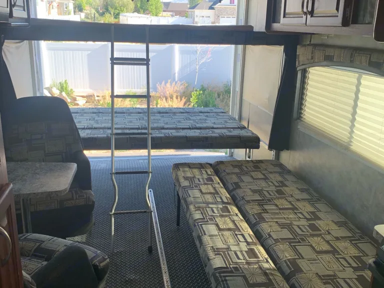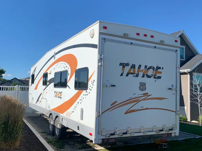 32’ Toy Hauler, will fit a Polaris RZR 4 seat 1000 or several wheelers/motorcycles. The garage size is 90” wide and 150” long and 74” tall. This rig has an on board generator and fuel tank for filling up the toys. Fully equipped with cookware, bowls, cups, spoons, forks, etc. The toy hauler has an Air conditioner and heater. Queen bed bunks in the back, couch that sets into a bed for sleeping 1. Queen master bed in front of trailer. 8000 lbs dry weight and 1200 lb toy fur weight, I have a weight distribution hitch that can be used if towing with a 1/2 ton truck. Most newer 1/2 ton trucks can tow the trailer when loaded and full. Perfect toy hauler for your weekend trip or weeklong getaway.