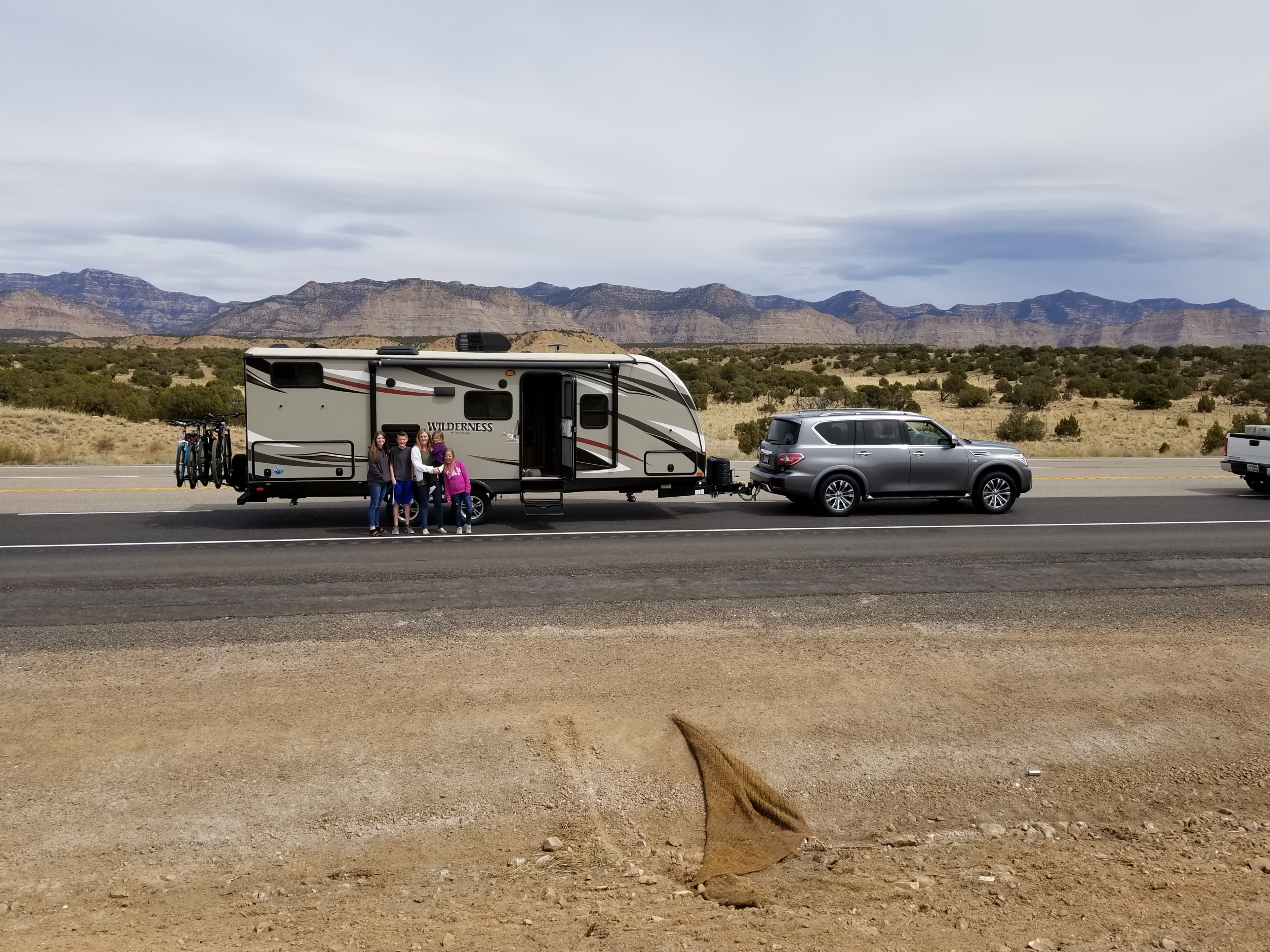 2016 Wilderness 2475 - just under 25 ft. Lightweight at 5500lbs. Double bunks, wrap around dining, front master with RV Queen Bed. Outdoor kitchen, power awning. Kitchen is fully stocked with pots, pans and utensils. The cupboards are also stock with plastic wear and paper plates and bowls. Towels included for the shower, dishes and bathroom. Load leveling hitch included with Rental to make towing easy. Rear receiver hitch on upgraded bumper for hauling bikes without concern. Plenty of storage for the short or long weekends.