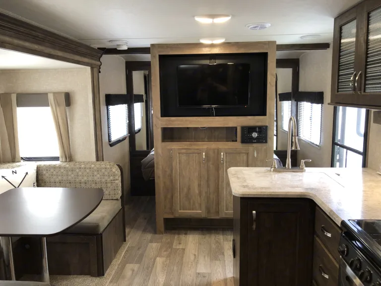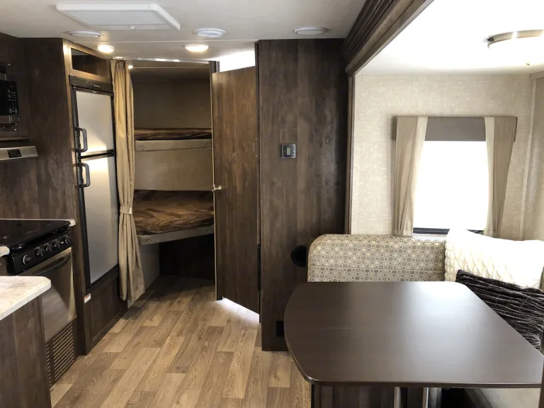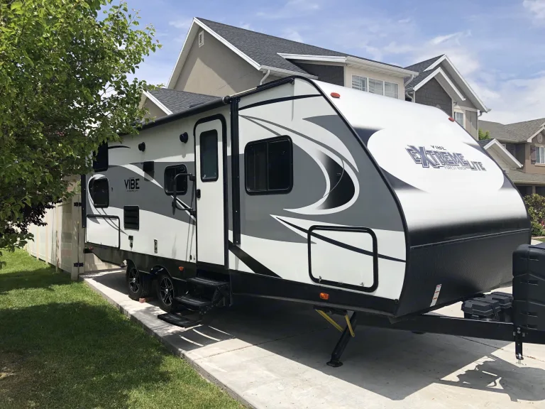 2018 Forest River Vibe; modern and spacious with dual bunk beds and nice finishes make this a great family get-away. Setup is super easy with remote control for the stabilizers, lights, and awning. The trailer is equipped with a 48in TV, DVD player, and BlueTooth stereo with outdoor speakers to entertain the family. The layout is what we really enjoy with a private master suite, curtains for the bunk beds, and a separate back entrance to help with traffic flow. What's includedThe kitchen is fully stocked and ready for cooking. Sheets for all beds are provided. However, pillows and blankets for the bunk beds are not provided. RecommendationsIf you're going to be dry camping (no electric or sewer hookups) you'll need a 2500-3000 watt generator to run the AC, microwave and television. You will also need to have an installed trailer brake controller for your truck or SUV. Our trailer weighs 5500lbs and we tow it with our 1500 suburban without issue.Other things to noteI provide instructional videos to help with the learning curve of using our trailer.