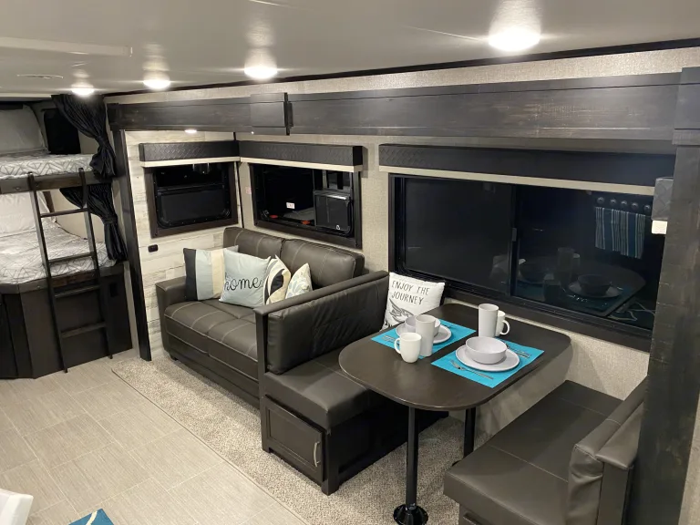 This beautiful new trailer sleeps up to 9 people comfortably. It comes equipped with one slide out and an outdoor awning with led lights. The double bunk beds make for a fun sleepover. The bathroom has a tub shower so it perfect for bathing your little ones. It’s a perfect camper to take a quick trip to the mountains or maybe a not so quick trip. Be one of the first to try out this brand new trailer! Don’t have a truck? No worries we offer a truck rental (Ford F150 STX) for an additional fee. Link for truck rental www.outdoorsy.com/rv-rental/lehi_ut/2020_ford_f-150_192993-listing?ref=