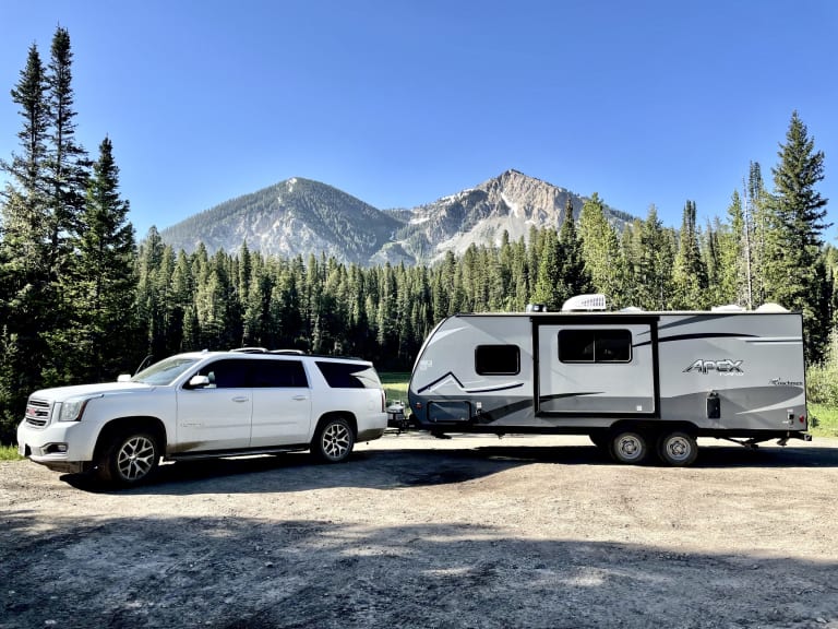 Been thinking about how your kids can enjoy camping with her own bunkbeds while you have your own queen bed? You might choose a Murphy bed option instead. This Apex nano also provides a slide out dinette for indoor dining, a camp kitchen for outdoor cooking, and a full bathroom for convenience for where ever you decide to stay. You can store your fishing gear and outdoor chairs in the pass-through storage compartment, and hitch up and head out for a weekend or longer vacation. Rent this model today!
