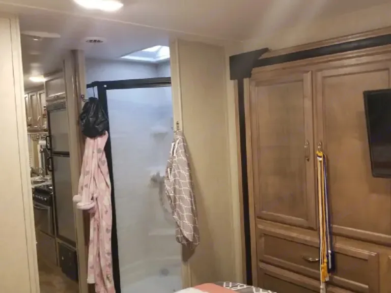 - Rear main bedroom has a walk around Very comfortable RV Queen bed, and television. Solid door for privacyThe motorhome has solar panels, and powerful batteries to accommodate off-grid camping, and a 4,000 Watts gas generator.Dogs are welcome if the customer adds the “Dog sanitation Fee”, that the dog(s) is not left inside unattended, and never allowed on top of an upholstered surface or mattress.The following items are included for you at no additional cost:1. Broom