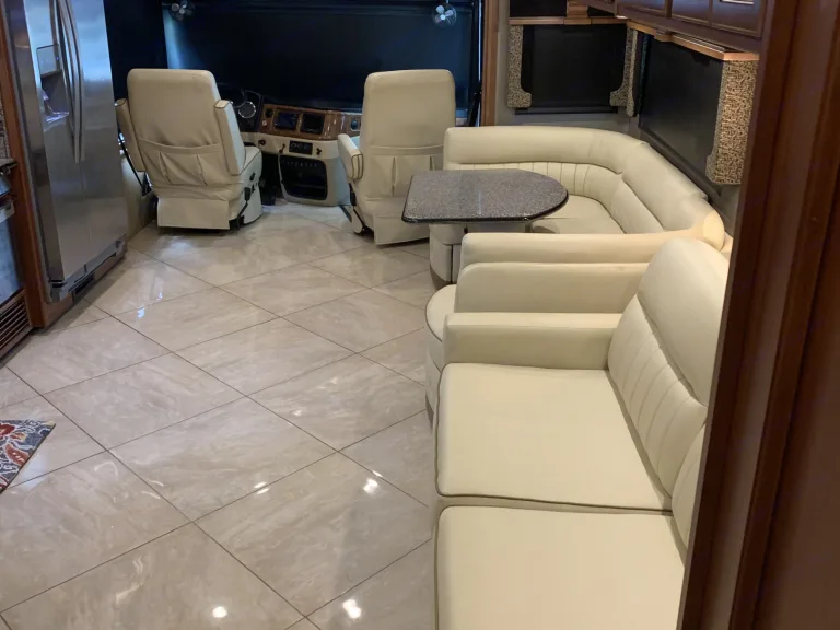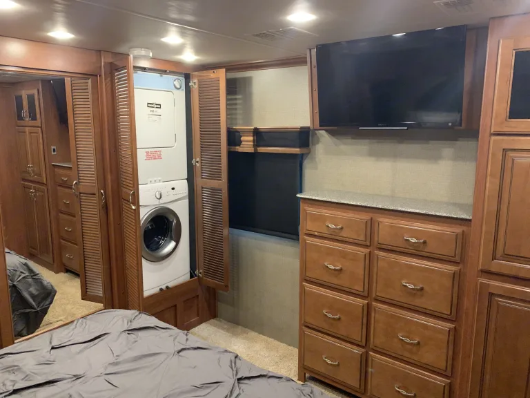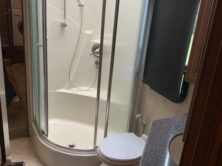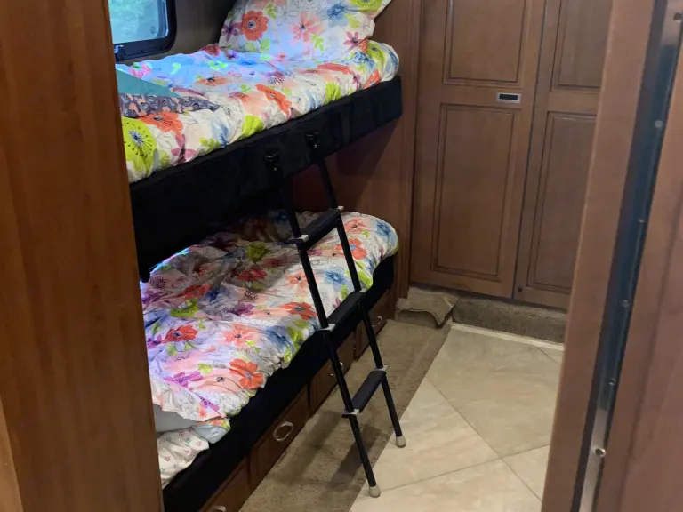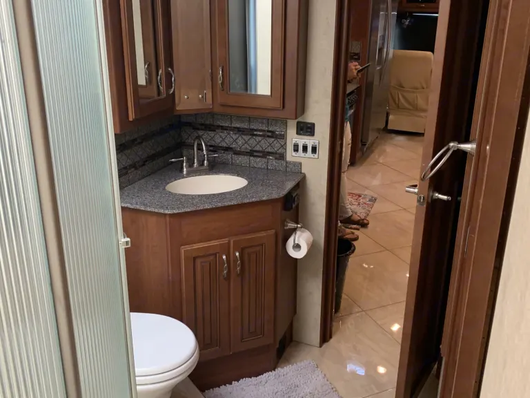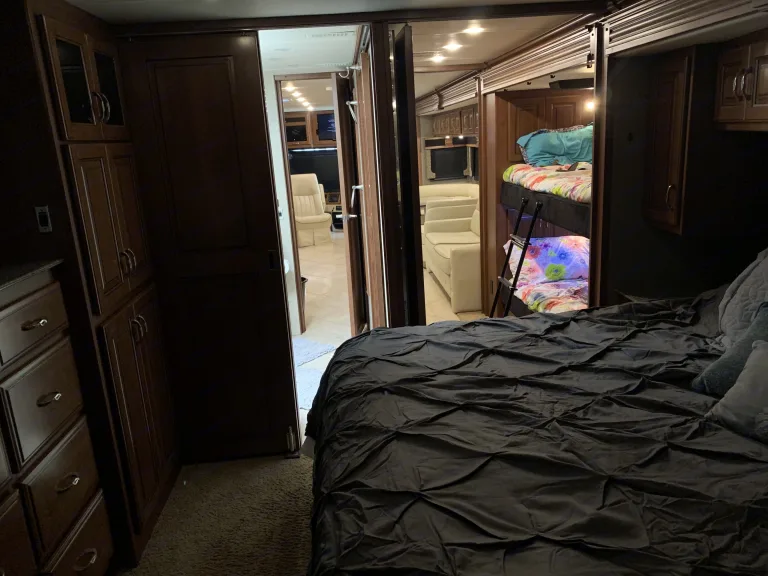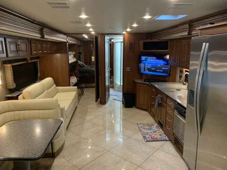 This is a well maintained and well kept up Diesel Pusher bunkhouse. The bathroom is easily accessible while driving down the road which is important if you have kids. It is fully furnished with everything you will need to enjoy a quiet weekend away or a road trip to wherever your heart desires. It also has in motion satellite tv throughout the coach.