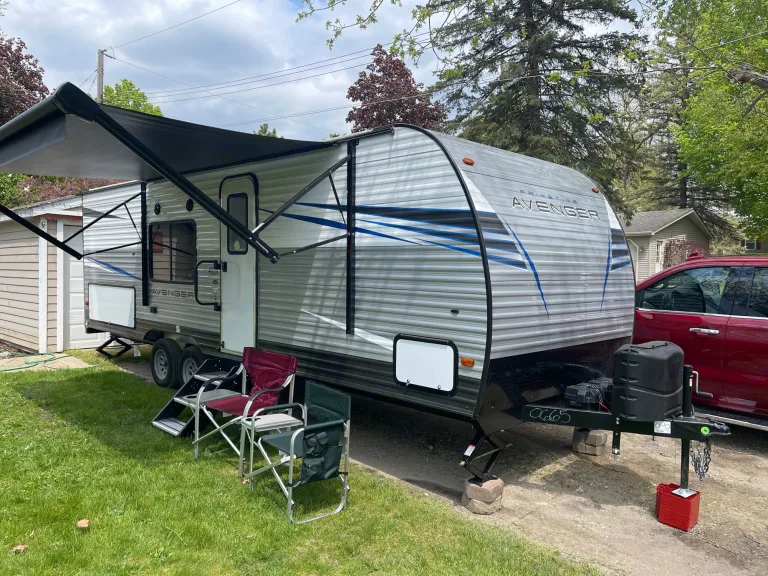 2 TVs coming soon. Couch, dinette, full kitchen including large refrigerator and freezer, as well as an outdoor kitchen. Has bathroom with shower, and queen size bed.What's included2 camping chairs, and a tent.RecommendationsEasy to tow, easy to set up with power awning.Other things to noteNo smoking, pets are welcome for additional fee and the couch must be covered. $100 pet fee $100 propane fee if tanks need to be refilled. $100 fee if tanks not emptied before return. Delivery available for $150 within 30 miles of my house.