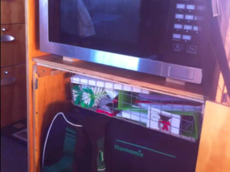 Lots of storage space with the ability to walk through from the front passenger seats to the rear.