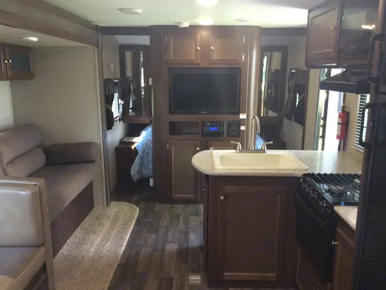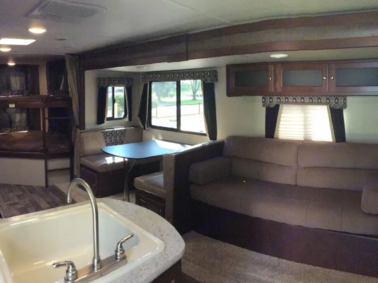 Welcome to the 2016 Keystone Bullet travel trailer. The Bullet sleeps up to 8 comfortably in queen size master, full size bunks, fold down sleeper table or a fold down couch. Kitchen is fully stocked with all you need for your stay. The bathroom has a tub/shower and direct outdoor. We are flexible and happy to do what we can to accommodate most requests. Check in is typically 3pm and check out is 9am. Check In/out may be flexible depending on rental status and turn around time. Pets considered for additional fee (must be well behaved/crated when unattended). What's includedThis trailer is a perfect set up for families. Includes TV with DVD player, indoor/outdoor sound system with Bluetooth, radio, or CD capabilities. Enjoy the outdoors under the electric awning with LED lights ( currently damaged) or hang inside with cool air conditioning and automatic gas heating to ensure your comfort in any weather.Other things to noteDeliveries over 25 miles require a 4 night minimum stay.