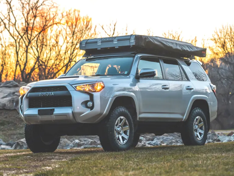 "Seneca" is our family's 2015 4Runner Trail Edition 4WD and we collaborated with OK4WD in Stewartsville NJ to build it for you to explore with! Seneca is ready to take you on an adventure and support your off-grid pursuits when you're ready to disappear.For camp life, we've installed a roof top tent and awning from Alu-Cab on top of a Victory 4x4 roof rack. The tent features three large windows, interior storage pockets, LED lighting and charging ports. The tent sleeps 2 adults very comfortably, 3 adults snug and with the hammock and fly we've included, you can sleep 4!The 270 degree Alu-Cab awning features solar reflective material making it a cool place to seek shelter from the sun. Both the tent and awning can be setup in just one minute!We've installed a Goose Gear drawer Seneca's cargo area. A Victory 4x4 Molle panel is mounted on a rear window with bungees for storing jackets and other random items.Accessory power is managed by a Redarc charger and there is a Sunflare solar panel installed on the roof to keep the batteries topped off without starting the vehicle. There is a full-time 12V and USB quick-charge outlet in Seneca's cargo area and a 400W AC/DC inverter for powering larger items when the vehicle is running. A 60qt fridge/freezer in the cargo area will keep your food and beverages chilled 24 hrs. a day - you just need some sun!You'll experience adventure-tuned suspension when you drive Seneca. Bilstein reservoir shocks and coil springs gives this 4Runner about 2.5” of increased ride height, enhances performance on secondary roads and significantly improves driver control during braking and evasive maneuvers.Seneca rolls on 255/80R17 Toyo Open Country A/Tiii tires. These tires are an excellent choice for all types of terrain and the tire size was selected to preserve fuel economy and driver safety.Because we love our pets and we know you love yours, we do allow one (1) pet per rental. Select Pet Permit when you reserve.What's includedSeneca comes equipped with the following (1) fitted cotton mattress sheet (clean), (10) pre-programmed GPS campsites, (1) NOCO Boost jump starter, (1) Seneca Camp Setup manual, (1) Oh Crap Kit and (1) ENO hammock and fly.RecommendationsNeed trip ideas? Check out our FAQs for fun trip ideas we recommend for your adventure in WV.Other things to note1) No Smoking. Renters forfeit security deposit paid if the vehicle smells like smoke and/or damaged by smoking. 2) Gas Refill - You are required to refill Seneca upon return. All charges associated with refilling the tank will be billed to your security deposit. 3) Be Careful and Have Fun - We've put a lot of work into building Seneca so please be careful exploring and respect the vehicle/equipment we are providing to you so others can have a wonderful experience on their adventures too.
