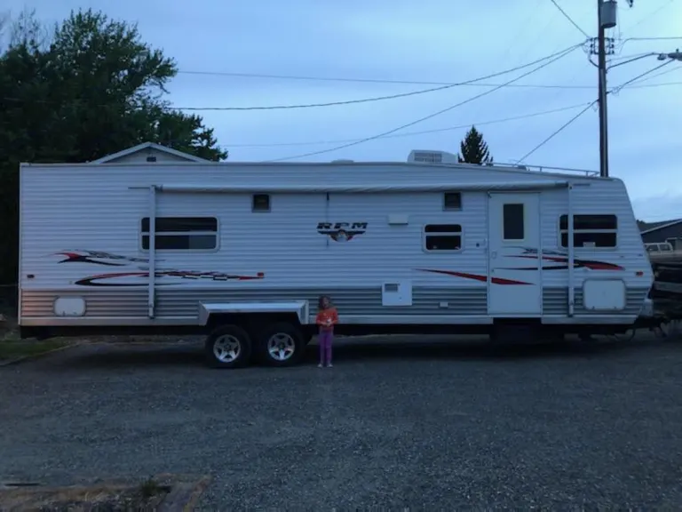 30ft toy hauler with a 12 foot garage. Garage is separated from the rest of the camper by a door. It's a great place to haul/store your toys, set up a private room for kids or pets, or use the ramp as a private deck/patio!