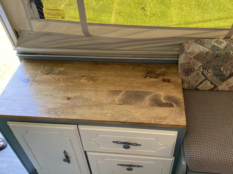 We got this camper close to 3 months ago did a full redo from floor to cabinets to table tops