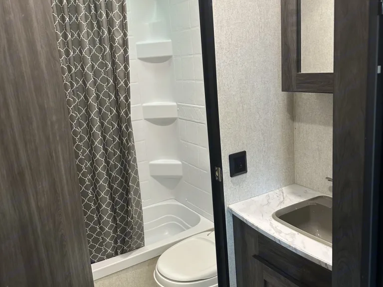 This camper can sleep a family of 4 comfortably or with an option to sleep up to 8!