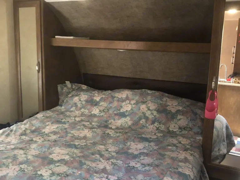 Rent this beautiful travel trailer as an extra space for visiting guests or we can tow it to your favorite camping spot! The whole family can sleep comfortably with a master queen in the front bedroom and 2 twins and 1 full bunk room in the back and room for 2 queen air beds to place on the floor and/or a cot for an additional fee of $15