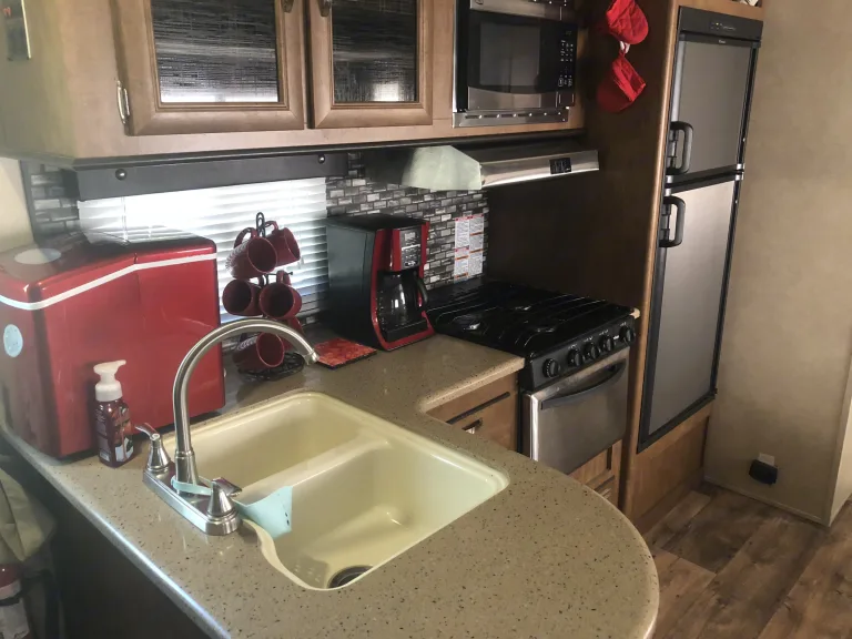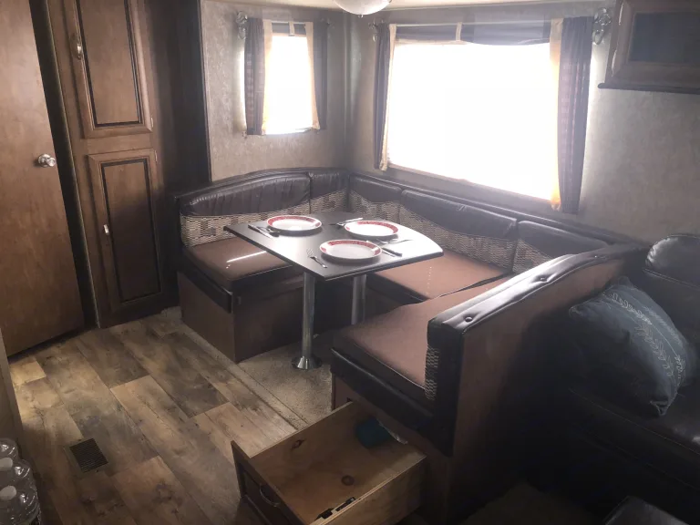 Our campers come with all the kitchen items such as glasses, dishes, utensils, cookware, coffee pot, etc. We also provide Bed Linens, pillows, comforters, bath towels and wash cloths.