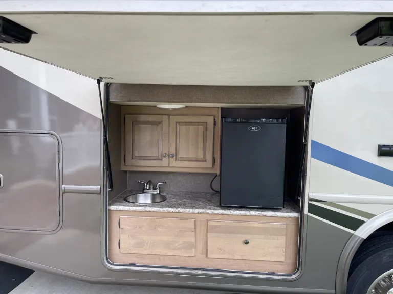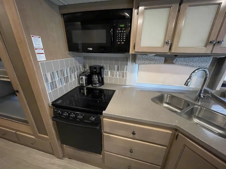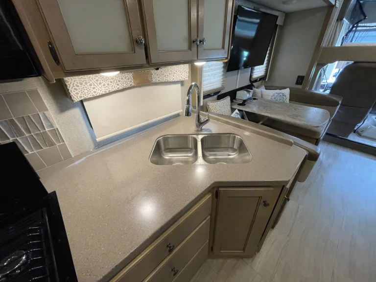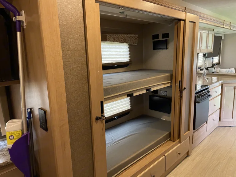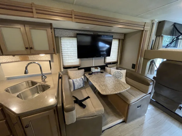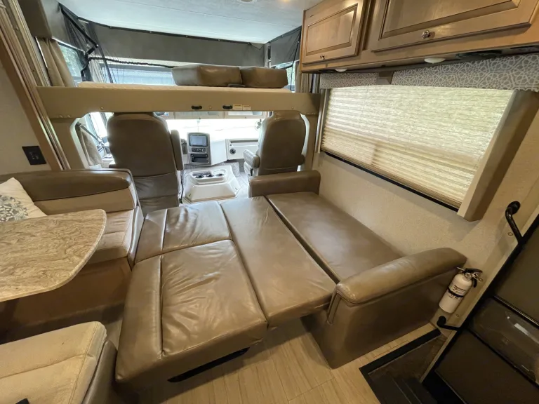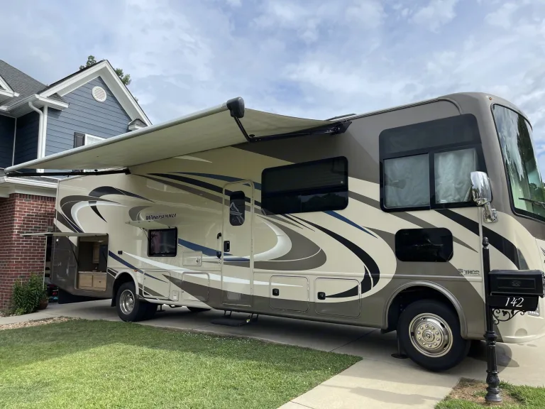 Our rig is a very nice, clean 2019 Thor Windsport 34J with a super slide that expands the living area an additional 60 square feet of living space when extended! It’s perfect for couples, or families large and small! There is room to sleep 10 people utilizing all beds, 8 people without having to convert the dinette, and 6 people without even having to pullout the couch! There is a king bed with luxury memory foam mattress in the rear master suite with a large closet and plenty of storage, twin bunks for adults or your little ones that can be converted into a large hanging closet for more storage, queen bunk with luxury memory foam mattress over driver/passenger seats, pullout queen couch, and a dinette that can convert into full-size sleeping space as well.This beautiful rig features auto leveling jacks with the push of a single button, 50 AMP dual AC front/rear, luxury interior package with a large residential stainless refrigerator, microwave, 3 burner gas stovetop, gas oven, and double sink, bathroom with large shower with skylight. The exterior offers a large outdoor kitchen with refrigerator and sink, outdoor gas hookups for grilling, outdoor TV, large automatic 18ft awning with LED lighting, and plenty of storage in several outdoor compartments. This motor coach is ready for all your outdoor adventures!! What's includedWe will provide comforters for all beds, but bring your own pillows and sheets because you know you’ll sleep well on your own linens!The kitchen will fully equipped with all your basics. Silverware (stainless steel sporks!), utensils, bowls, and a complete set of pots and pans. There is a 22” Blackstone Griddle with direct propane hookup so you can take full advantage of cooking meals outside by the outdoor kitchen. Finally, there is also a folding table, 5 outdoor chairs, and an outdoor rug to complete your awesome outdoor living space!! Other things to noteAbsolutely NO SMOKING!!Pets Welcome with deposit