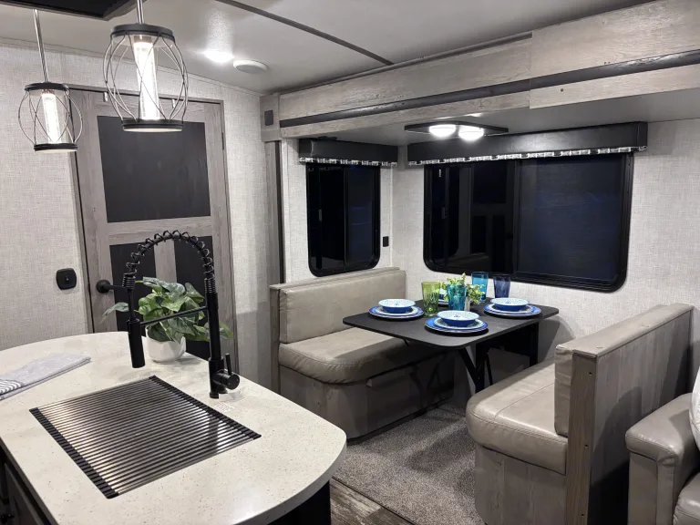 Indoor/outdoor flexibility (great for pets, kids, or gear)Exterior Perks:Outdoor kitchen with mini fridge, sink, and cooktop