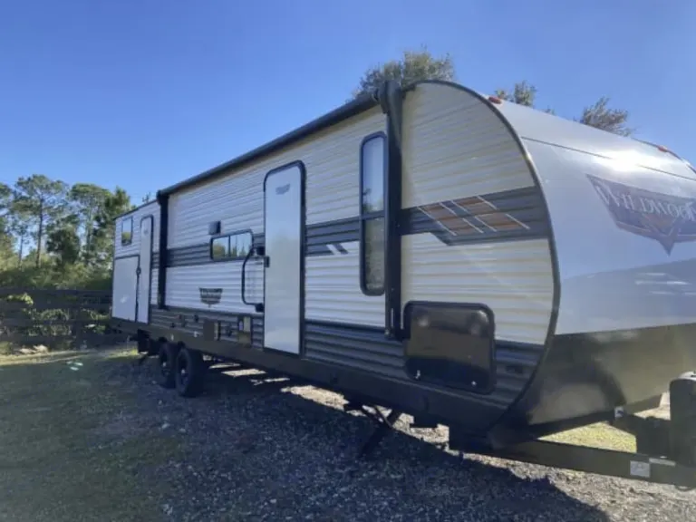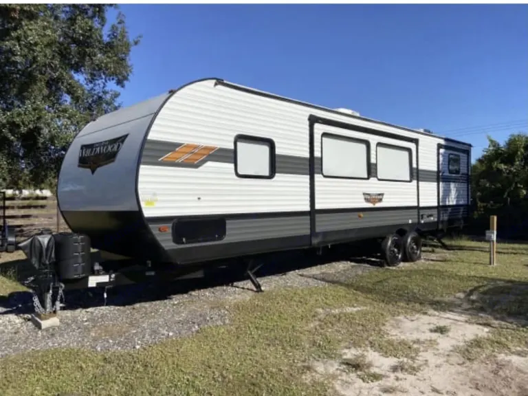 2021 Forest River with 2 slide outs, outdoor kitchen, bunkhouse and plenty of room. This camper is offered at delivery only. The camper comes fully stocked on the inside and is ready to be setup at your site. The unit has a private front queen bed, a private bunkhouse in the back of the camper, with 3 beds. This is a great camper for the family to enjoy. The outdoor kitchen provides an awesome atmosphere for hosting friends and family at the campsite. Feel free to message with any questions, I will be happy to help.