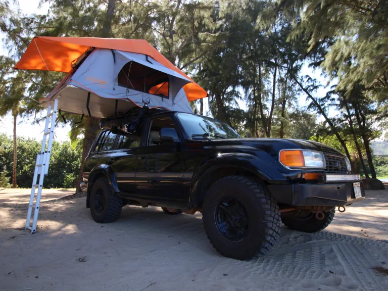 This Classic Toyota Land Cruiser features a free spirit recreation high country rooftop tent mounted on top that can comfortably sleep 2-3 people.We also include all the camping and cooking gear needed to have your dream vacation: