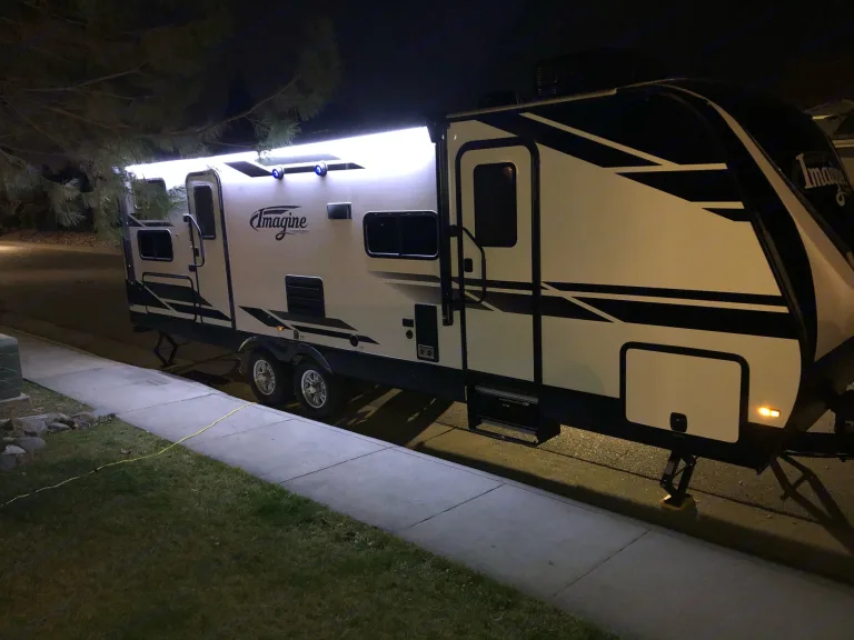 Brand new 2020 Grand Design Imagine 2800 bunk house model. Sleeps 8 comfortably and 10 if 2 sleep in the heated/massaging recliner chairs. 1 master bedroom with queen bed, 2 double bunks, 1 dining room table with wrap around seating converts to bed and 2 reclining chairs. Kitchen included sink, microwave, oven. Plenty of storage. 2 doors(1 for master room and 1 for living area). Powered awning. Outdoor LED lighting. Bluetooth speakers indoor and outdoor. Smart TV on swivel mount.What's includedPlates, bowls, cups, silverware, utensils. Coffee maker, toaster. Fresh bedsheets/blankets and pillows. Camping chairs.Other things to noteNo pets.