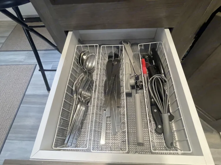 What's includedPLATES, CUPS, SILVERWARE FOR EIGHT • FOUR COFFEE MUGS • POTS AND PANS • ONE COOKIE SHEET • CAN OPENER • WINE OPENER • TOASTER • KEURIG • TWO MIXING BOWLS • COLANDER • CUTTING BOARD • KNIVES • COOKING UTENSILS • WHISK • MEASURING SPOONS AND CUPS • PIZZA CUTTER • OVEN MITS • DISH TOWELS • HAND TOWELS • DISH SOAP • SCRUB BRUSH • EIGHT BATH TOWELS • LINENS • FOUR BEACH TOWELS • FOUR CAMP CHAIRS • OUTSIDE TRASH CAN • OUTSIDE MAT • WHEEL CHOCKS • JACK PADS • HOSE FOR WATER •POWER CABLE • SEWER HOSE • SEWER HOSE • SEWER HOSE SUPPORT***NOT INCLUDED***