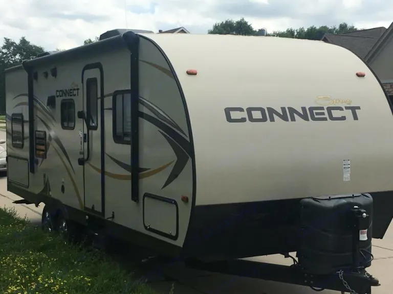 This Spree Connect travel trailer features a rear bunk house and a single slide u-dinette.Stepping inside this travel trailer, you will find the front bedroom to your right. The bedroom offers a comfortable queen bed and wardrobes on either side of the bed.In the kitchen area you will find a double kitchen sink, three burner range, and refrigerator. On the opposite side of the trailer is a pantry and a u-shaped dinette. You can relax at the dinette and enjoy the entertainment center.The bathroom offers a toilet, tub, sink, and medicine cabinet.The rear bunk house has a double bunk which is ideal for your kids.There is plenty of overhead cabinets throughout the 250BH as well as an exterior pass thru storage.
