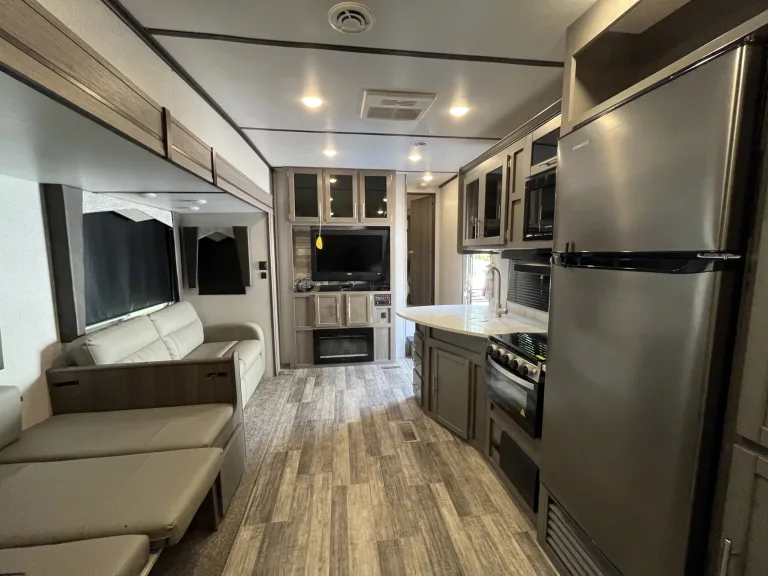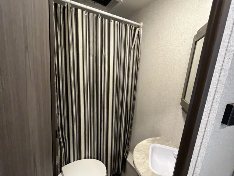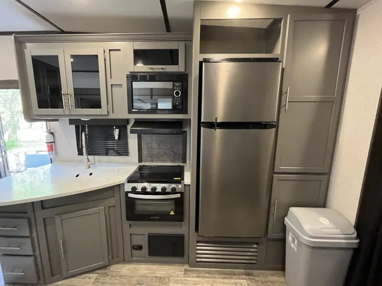 This unit has everything you need, one slide out, bottom bunk only, queen bed on the other end with half bath. Outdoor shower, sink, and cookstove, as well as outdoor music speakers. Other things to noteNo Smoking or pets!
