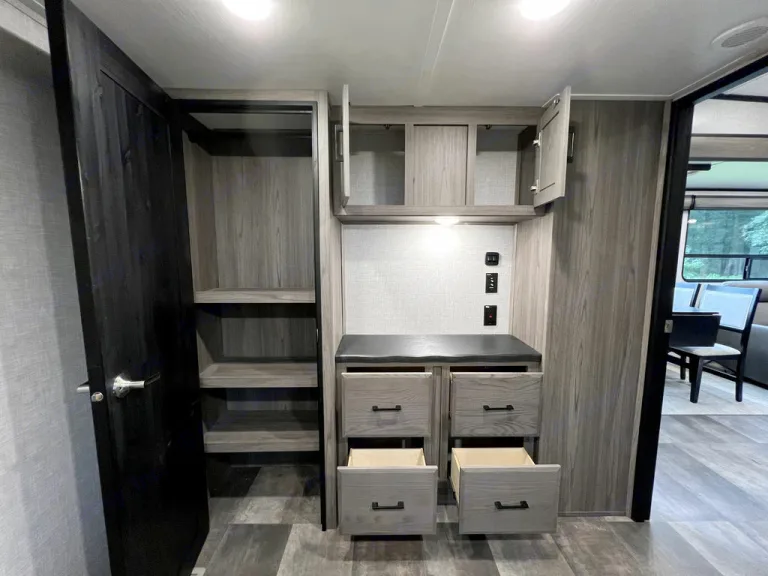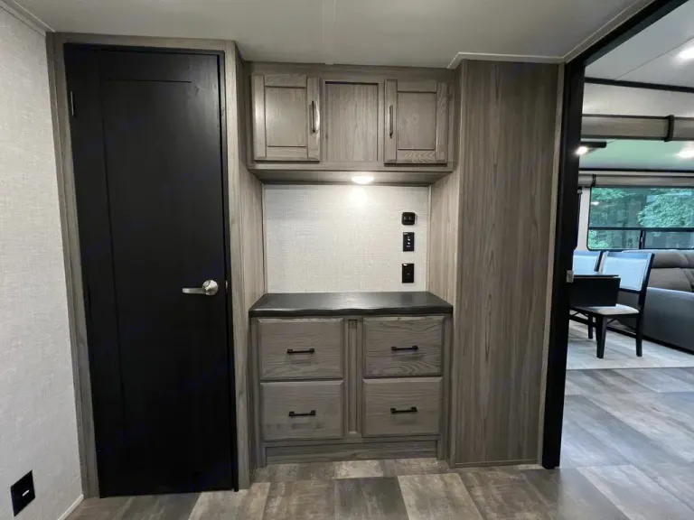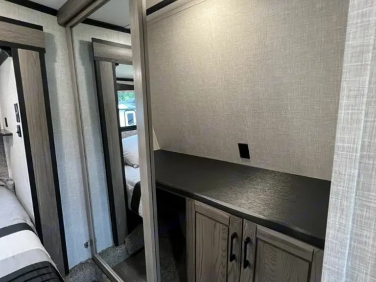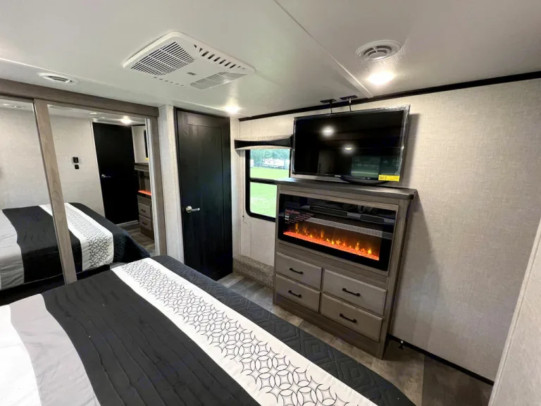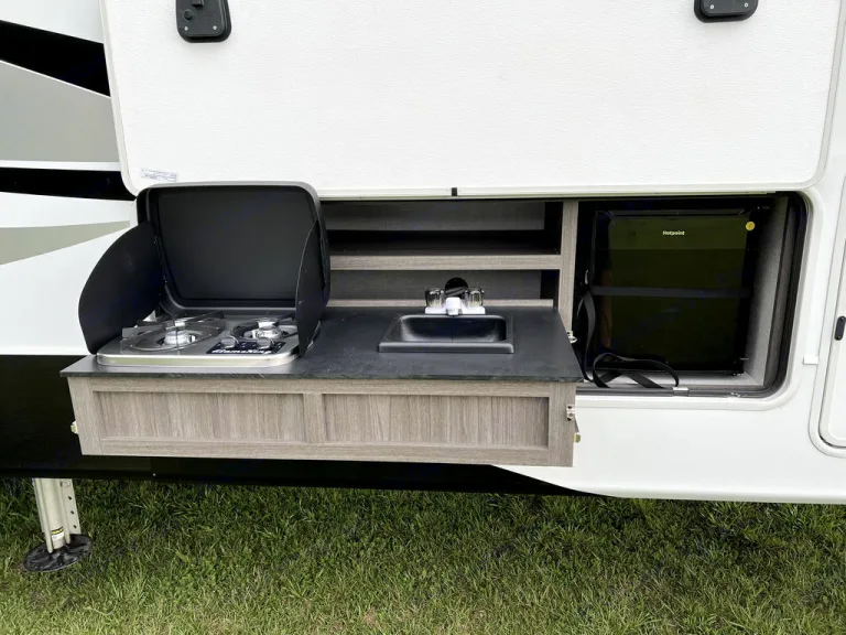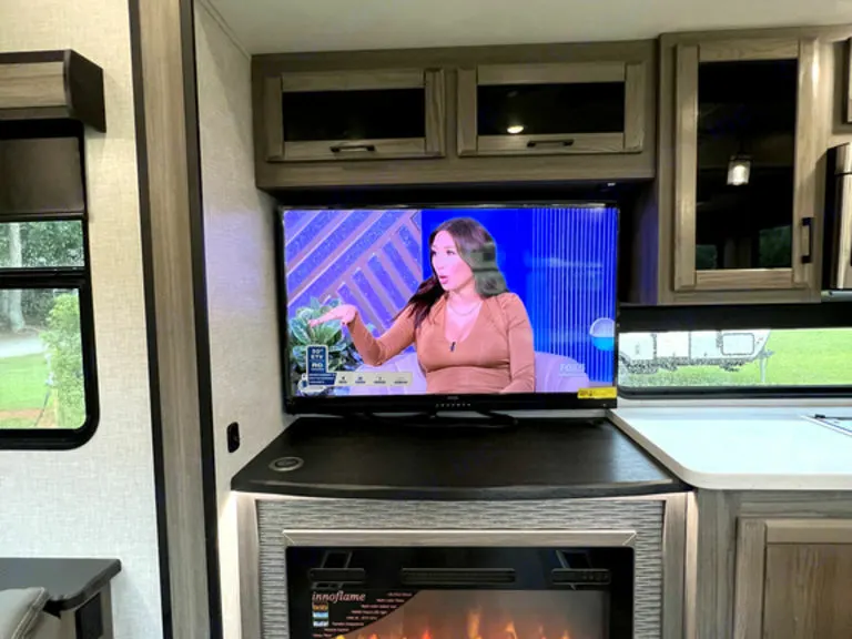 Outdoor Entertainment: Extend your living space outdoors with the RV's exterior entertainment system, perfect for enjoying movie nights under the stars or cheering on your favorite team.