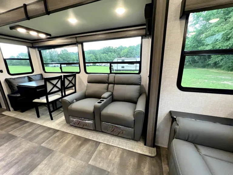 Step into luxury with the 2021 Crossroads Cameo 3961MB, the epitome of elegance and comfort on wheels! This stunning fifth wheel RV offers a truly exceptional travel experience for those seeking a premium escape.Featuring a spacious and beautifully appointed interior, the Cameo 3961MB boasts exquisite craftsmanship and high-end amenities throughout. From the moment you enter, you'll be greeted by plush furnishings, modern finishes, and thoughtful design touches.This deluxe RV is perfect for families or couples looking to indulge in the finer things while exploring the great outdoors. With sleeping accommodations for up to six people, including a luxurious master bedroom and a separate bunkhouse, everyone can enjoy their own private oasis.Highlights of the Crossroads Cameo 3961MB include:Residential-Style Living: Relax in style in the spacious living area, complete with a cozy fireplace, comfortable seating, and large windows for plenty of natural light.