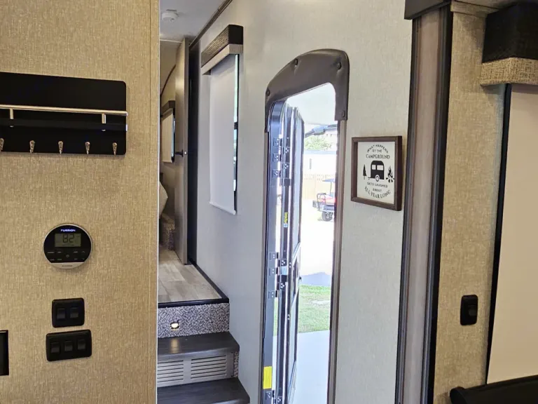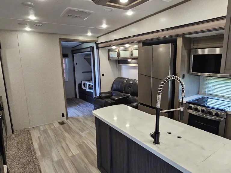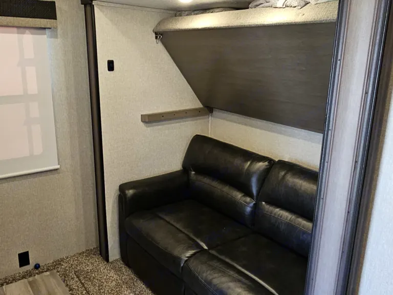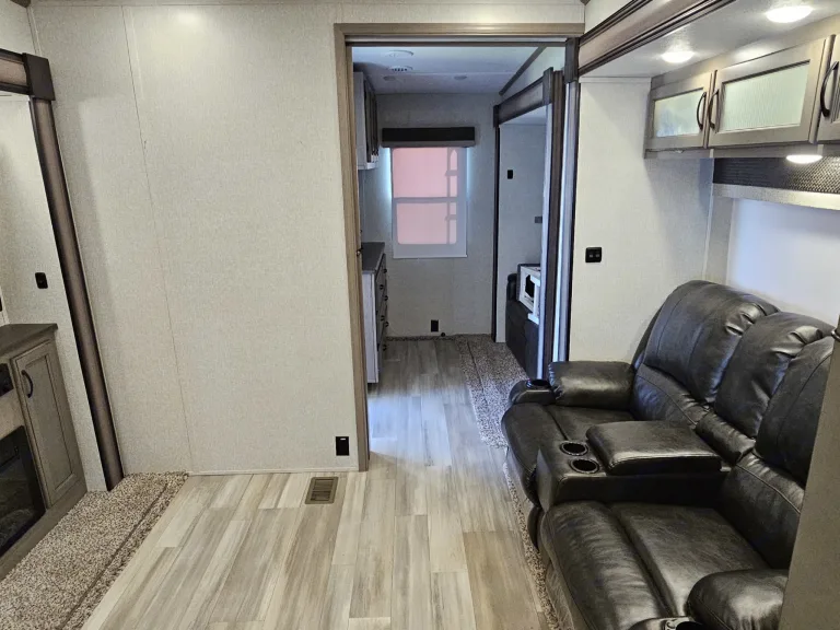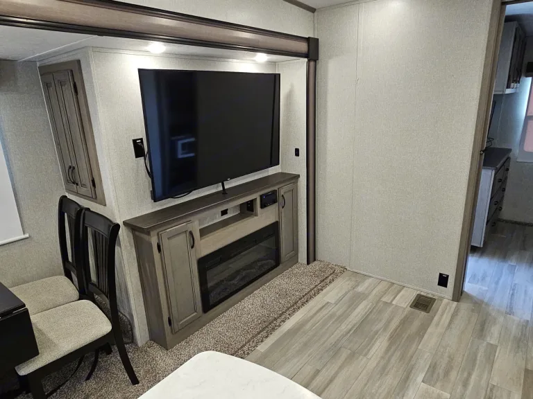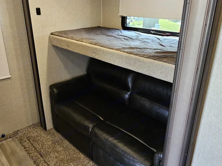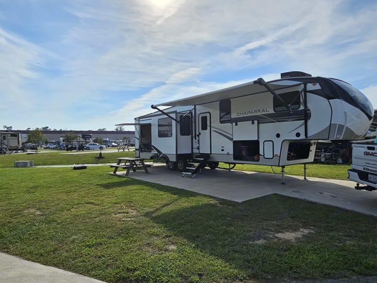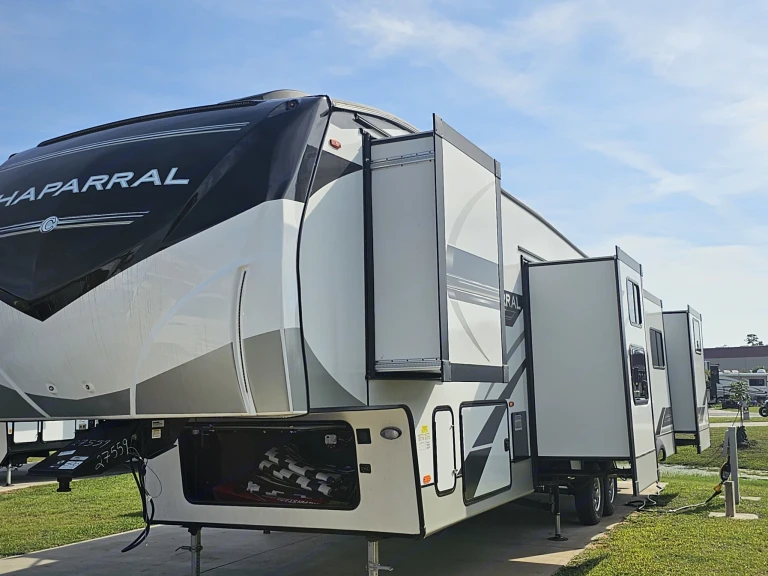 Welcome to the world of premium RV rentals with our stunning 2022 Coachmen Chaparral 373Mbrb. Whether you're planning a family vacation, a couples' getaway, or a road trip with friends, this meticulously designed fifth wheel offers the perfect blend of comfort, style, and functionality. Get ready to embark on an unforgettable adventure with all the conveniences of home on the road.**Exterior Features:**- **Quality Craftsmanship:** The Coachmen Chaparral is known for its exceptional build quality, ensuring a safe and reliable journey for you and your loved ones.- **Smooth Towing:** Featuring an aerodynamic front cap, this fifth wheel cuts through the wind for a seamless towing experience. Set up is a breeze with the electric front and rear stabilizer jacks.- **Outdoor Entertainment:** Take your relaxation outdoors with the exterior entertainment center, complete with a large LED TV and speakers. Perfect for enjoying a movie night under the stars or catching the game while tailgating.- **Storage Galore:** With spacious pass-through storage compartments and a rear garage, you'll have plenty of room for all your gear, bikes, and outdoor equipment.**Interior Features:**- **Spacious Living Area:** The living area is designed for relaxation, featuring comfortable seating, a cozy fireplace, and a large LED TV. It's the ideal spot to unwind after a day of adventure.- **Gourmet Kitchen:** The fully equipped kitchen boasts solid surface countertops, a residential refrigerator, a three-burner cooktop, and a generous pantry. Cooking on the road has never been this enjoyable.- **Private Master Suite:** The luxurious master bedroom includes a king-size bed, a wardrobe with washer/dryer prep, and an en-suite bathroom with a spacious shower and solid surface countertops.- **Bunkhouse:** A separate bunkhouse provides a private space for kids or guests, complete with its own bathroom and entertainment center.- **Comfortable Sleeping Arrangements:** In addition to the master bedroom and bunkhouse, the living area sofa converts into a bed, and the dinette offers additional sleeping space, accommodating up to 9 people.**Additional Features:**- **Four Slides:** This fifth wheel features four slide-outs, offering extra space and a roomy interior.- **Climate Control:** Stay comfortable year-round with the dual-zone air conditioning and heating system.- **High-End Finishes:** The Chaparral 373Mbrb is adorned with premium cabinetry, residential-style fixtures, and elegant lighting throughout.- **Smart Technology:** Stay connected with the built-in Bluetooth audio system, USB charging ports, and optional Wi-Fi capabilities.Experience the epitome of luxury and convenience with our 2022 Coachmen Chaparral 373Mbrb rental. It's your passport to unforgettable adventures and cherished memories on the road. Contact Mtrv Rentals today to reserve your dream getaway on wheels!