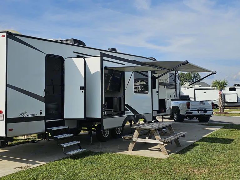 Our RVs are delivery-only and will be fully set up for you at your chosen campground. Do not attempt to move or relocate the RV.