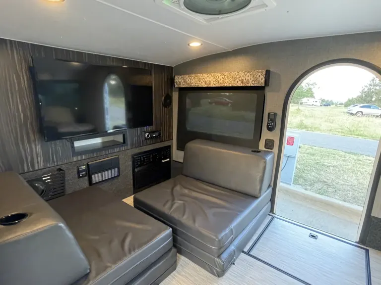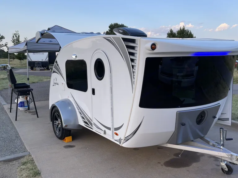 Our new 2018 inTech Luna has great floorplan that can comfortably sleep 2. This light and nimble trailer can be easily maneuvered on pavement, dirt, or gravel. There ample storage in the front compartment as well as the main section. Inside you will find under seat storage, in-floor storage compartments as well as plenty of storage in the main area.There are two sleeping pads that can lay out individually, or can be combined for a large sleeping pad.The 8k AC and 15K BTU heater work very well. In the kitchen area there is a stainless-steel sink, 3 burner range, and basic cooking and eating utensils, as well as a coffee pot, pans and plates.This camper is also equipped with antenna for watching TV in high definition and dual zone Bluetooth audio system for tunes while you hang outside. Additionally, there is external lighting at each of the doors as well as on the front cap.I recently installed a new battery with a shut-off. We have a generator if you are planning on going off the grid. You will need a vehicle that is rated to tow at least 2500 lbs.My Wife and I enjoy this trailer every time we take it out, and I am sure this trailer is perfect for your next trip! Please let us know if you have any questions!