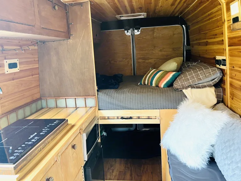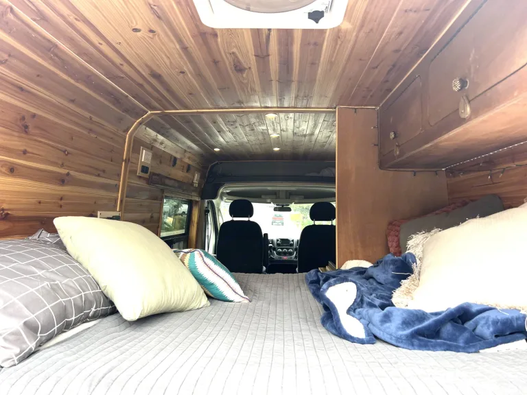 Greta is a 2019 Dodge Ram Promaster with cedar paneling which allows a cozy cabin-like feel! Her cedar paneling also allows for soundproofing and comfortable temps!She was professionally converted by PataVans. She comes equipped with solar the powers the induction stove, microwave, and refrigerator that also has a small freezer. Never pay for a campsite again! Greta has a raised platform bed with ample storage space underneath as well as a cupboards and a bench for storage. There is countertop room for cooking while enjoying the views. There is bench seating and the driver and passenger seats swivel allow for easy dining.What's includedRenting comes with fresh linens, cookware, utensils. Paper towels & trash bags. Privacy curtains for windows and front windshield.Airport pick-up and drop off from Airport available upon request with an extra charge. Delivery within 30 mile radius available upon request.RecommendationsHiking, biking, climbing, or anywhere the outdoors takes you! I'm happy to help direct you for whatever you are looking for!Other things to noteThe bed is a bit short. If you are 5’8” or taller you will most likely need to sleep diagonally if you like to stretch your legs out all the way. My friend who is 5’11” uses it and it doesn’t bother him at all. No pets or smoking. Greta Van Fleet is front wheel drive so is not meant for off-roading. Off-roading is not allowed and the van must be kept on roads that are suitable for front wheel drive and medium clearance.