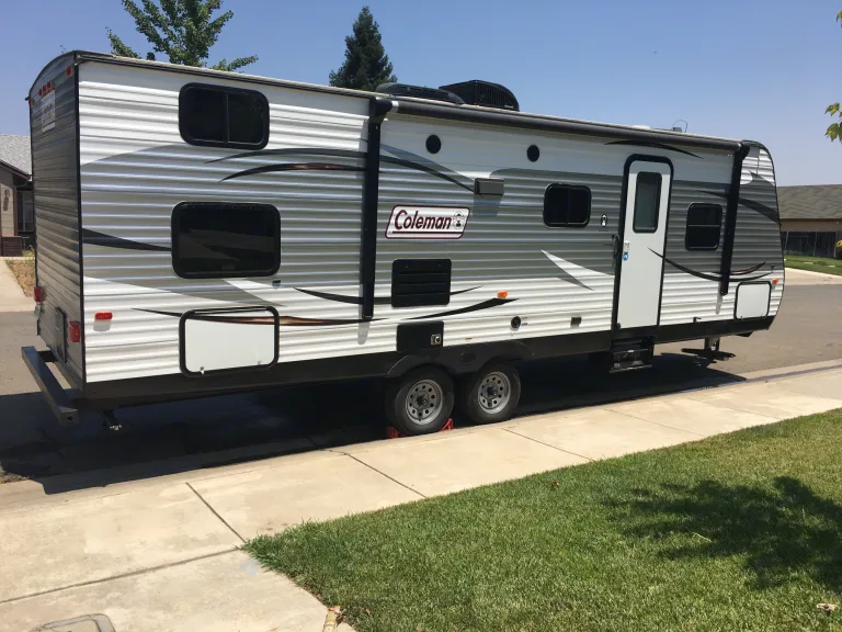 Perfect condition, is the first words that come to mind. Our trailer is very clean, equipped with tv, dvd/cd player, just about all your kitchen needs including a keurig and ample storage space for all your needs. It sleeps 9 comfortably with two full size bunk beds, queen size master bed with his and hers closet space, futon couch and dining table folds to an additional full size bed. Bedding not provided, Bring your own sheets. The upgraded led lights help to provide great lighting at night. The powered awning also has led lighting. We have one pop out which creates so much movable space you forget it’s a trailer. In addition we have a full bathroom with wonderful hot water! Heater runs on propane and the ac battery power (generator is needed for ac). Depending on where you camp the trailer has both city water hook up and fresh water. We will provide the power cord converter at no additional cost.