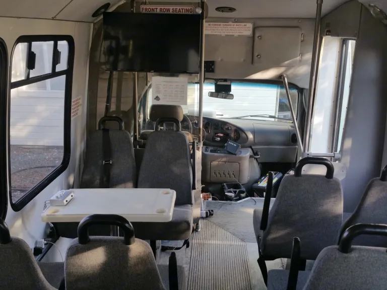 Important! This bus was a real operational city bus. Because of this it basically has urban camoflauge. I have had countless time where venues mistaken it for a commercial bus and you are able to enter and park in areas otherwise off limits to mortals. Your milage may vary.E-450 shuttle Bus. 14 passenger seats + driver makes this vehicle have 15 seats. Regular drivers license ok.This is important because it does not require you to have a bus endorsement on you drivers license in CA. Check your local laws if outside CA.Bus has hydralic handicap lift in the rear. This can lift very heavy objects, i.e. dirtbike, BBQ grill, washer dryer,.....etc.Bus has plenty of storage in rear with tie down straps and rail in floor. TV, disco ball, karaoke stystem. This bus is ready for tailgate, wine tasting, bar hopping and camping. Or if you need to move something heavy and just need a hydraulic lift this is for you.I have used this bus for family trips to Tahoe and it is great. Much fun when everyone is in 1 vehicle.You have to figure out the insurance. I insure it as an RV through Progressive.This is the only rentable shuttle bus in the universe. Normally you have to charter a bus with a driver who you have pay with actual money or "favors". Act now while supplies last!