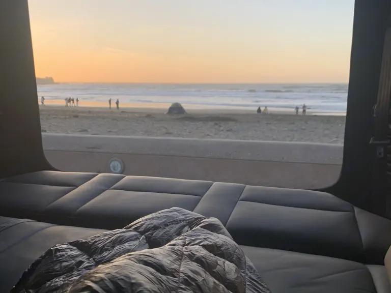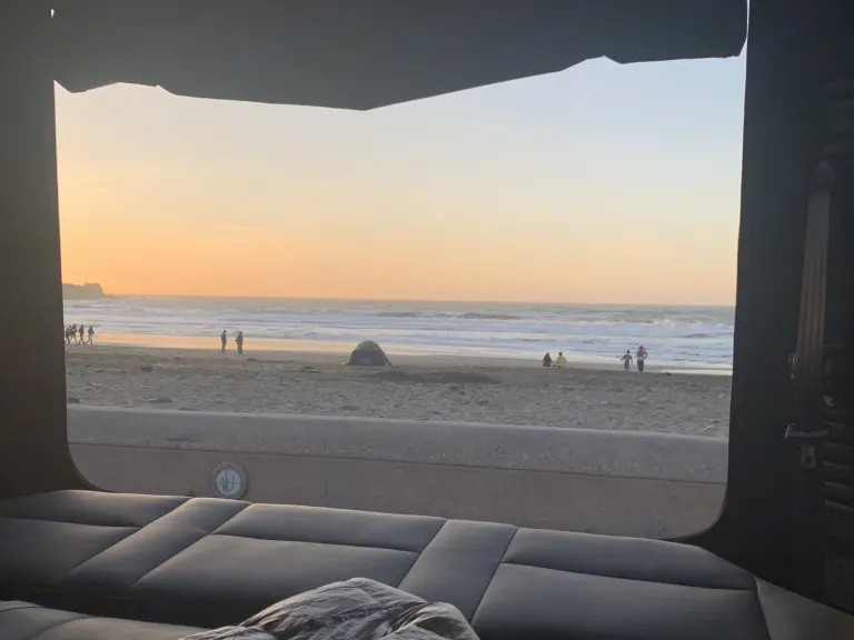 Modern, clean and practically brand new. Sink, stove, microwave, refrigerator, freezer, bathroom, indoor and outdoor shower. Tons of storage in overhead cabinets, behind bench seat and cabinets below back chairs. What's includedTP, Coffee Maker, Toaster, pot, pan, 4 compact camping chairs, table, and more. RecommendationsBeach side camping-Seacliff, New Brighton