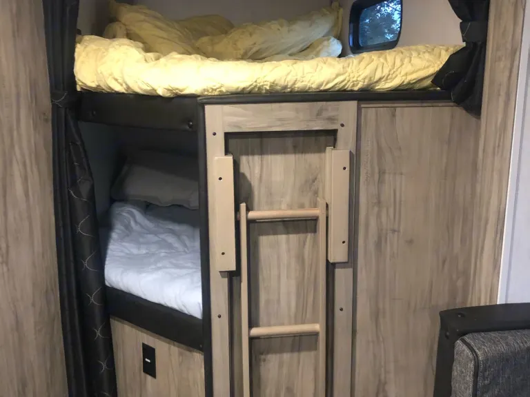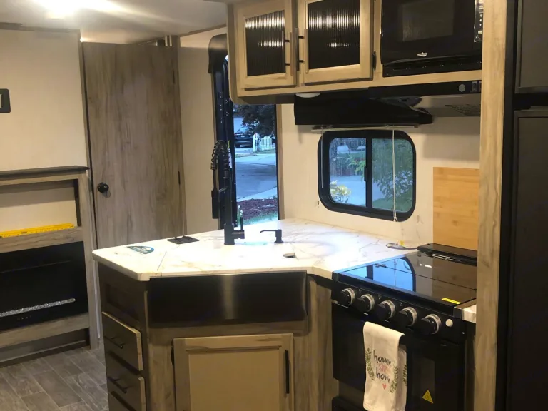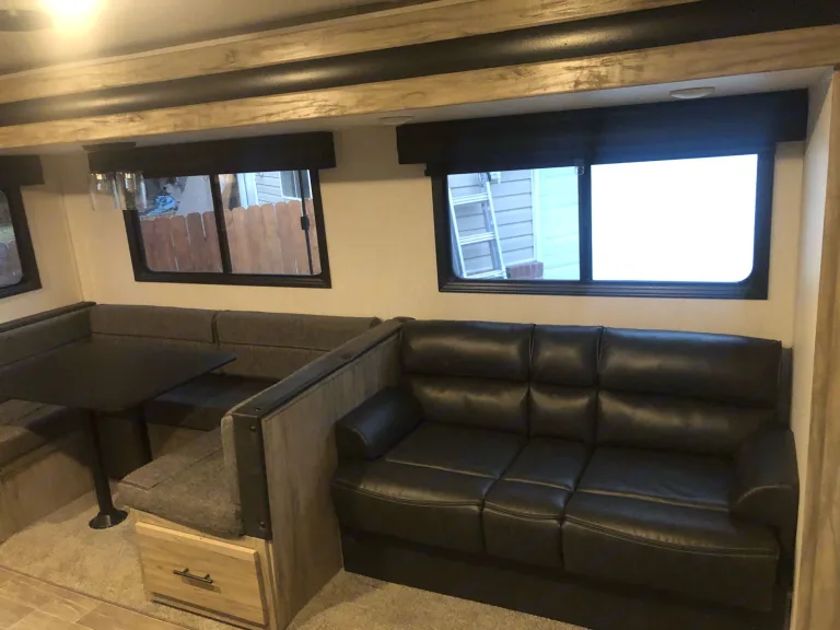 Brand new trailer. Modern interior.What's includedFresh linens, shower essentials, basic cooking utensils/ pots and pans, coffee maker, 2 camp chairs and a tarpOther things to notePets are welcome as long as they are cleaned up after. No smoking inside the trailer.