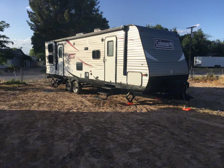 Sleeps 10 with a queen bed in the front and double over double bunks. Has the jackknife sofa bed and a dinette table bed. 7500 lbs dry weight and can hold another 2000 lbs of equipment. It has a WDH that will be supplied with it. No generator. You will need a 30 Amp shore power connection to run the AC.
