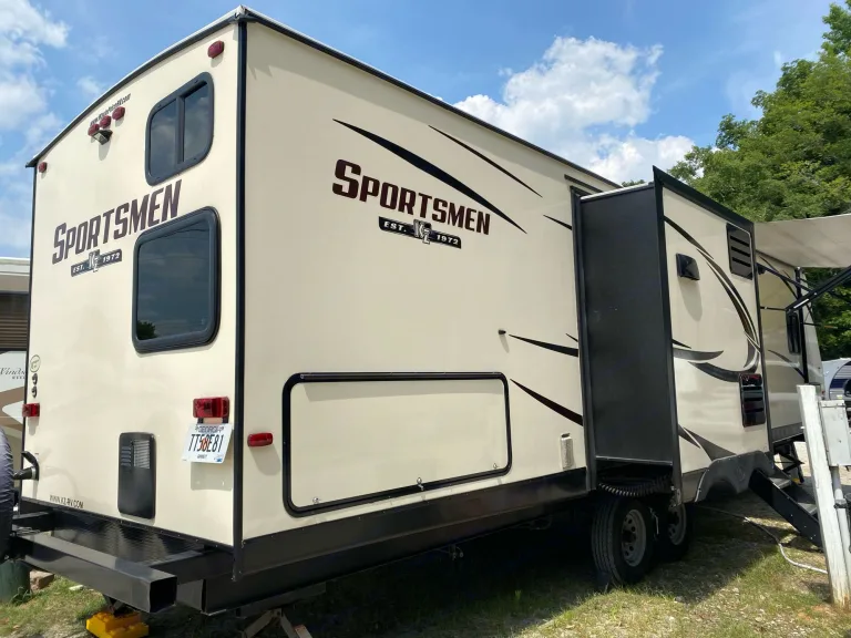 Brave Brownie is like new, Family friendly camper with plenty of room for the whole bunch! Front queen bedroom with an outdoorsy feel. Rear bunk w/ slide and trundle bed will sleep 5-6 comfortably. Double slides in living room with ample counter space. Bathroom with walk-in shower. Amazing blue lighting for the movie nights. TV's in the living room and back room with cable plugins. DVD player and radio with speakers inside and outside. Outdoor kitchen and fridge. Outdoor lights and outdoor shower. What's includedFresh linens for all the beds. Some cook wear and Utensils. Nice outdoor rug and white 6 foot table included. All hoses and leveling items.