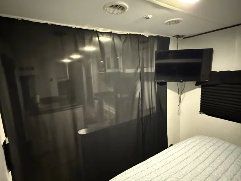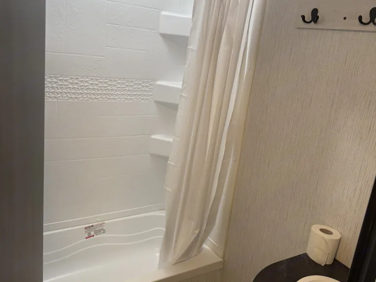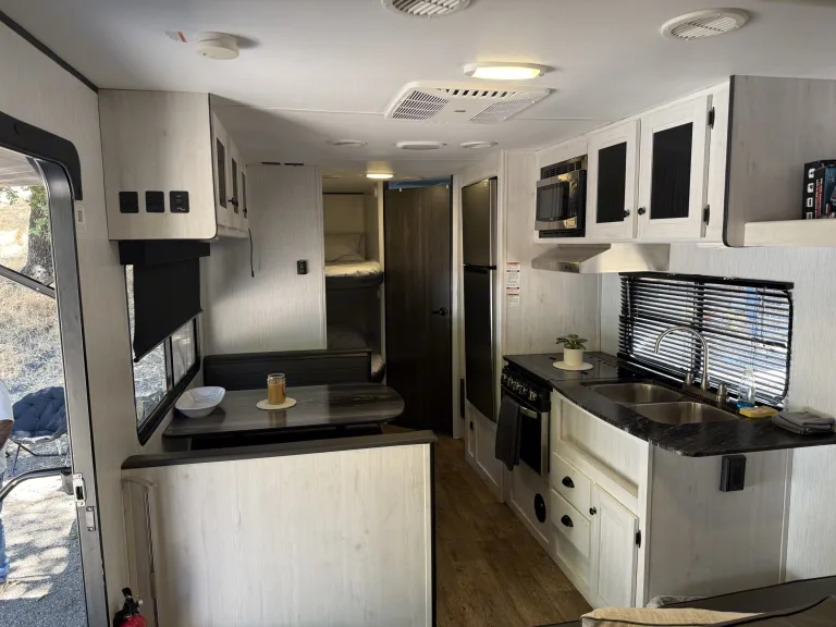 - **Kitchen Amenities:** Includes a refrigerator, stove, oven, microwave, and ample storage space for your cooking needs. Also with silverware, plates, cups, all your cooking needs. Paper towels, dish soap, sponge, trash bags.