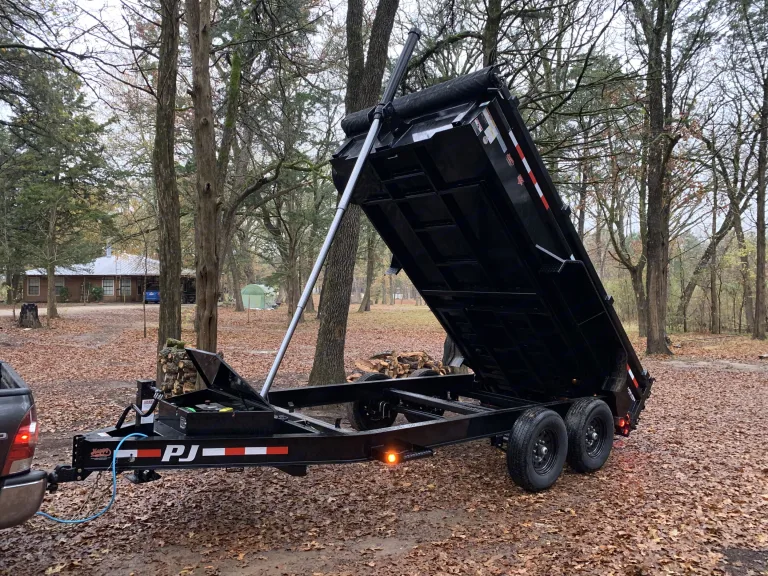 This hydraulic dump trailer is a brand new 14 ft x 83 in with 2 ft sidewalls. Will hold about 7 cubic yards and is rated to haul up to 14K lbs and lift/dump up to 10K lbs. Requires a minimum 3/4 ton truck with a 2 5/16 ball and a brake controller. It has all required DOT regulatory components. Also has 8 ft slide-in ramps for hauling skid steer, tractor, etc to job site. Proof of full coverage insurance is required.What's includedIncluded is a heavy duty tongue lock, extra load cover tie-downs, and safety gear which is required at some landfill locations. Battery will be fully charged but may need to be plugged into a standard outlet to recharge after frequent use.RecommendationsFlat tires are the most common issue with dump trailers that visit landfills. Ensure you have a jack and tire removal tool just in case. There is a new spare tire mounted on the trailer. Other things to noteReminder when dumping trash- most landfills do not accept the following: Adhesives, Car Batteries, Fluorescent Lightbulbs, Food Waste, Freon, Hot Water Tanks, Household Cleaners, Inks & Resins, Oils, Fuels & Propane Tanks, Paint and Lacquers, Railroad Ties & Telephone Poles, Tires, Hazardous Waste, Flammable or Ignitable Wastes, Corrosive Wastes, Reactive Wastes, Toxic Wastes, Biohazardous or Infectious Wastes.Return trailer empty and rinsed out with no signs of abuse other than normal wear.