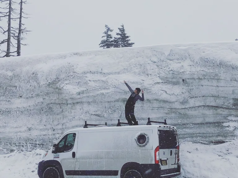 Like new cargo van converted into a simple living space with a rustic design. Outfitted with close to queen sized bed.