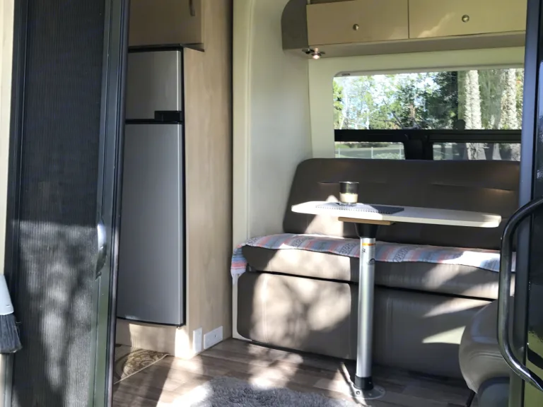 At 22ft, you can take Missy anywhere. Pull into any city or town center and she'll fit in a single parking space. With her pop out open (yes, she has one), you will soon forget that you're in a van. All the amenities of home including a private bathroom with separate shower, sink and China bowl toilet.