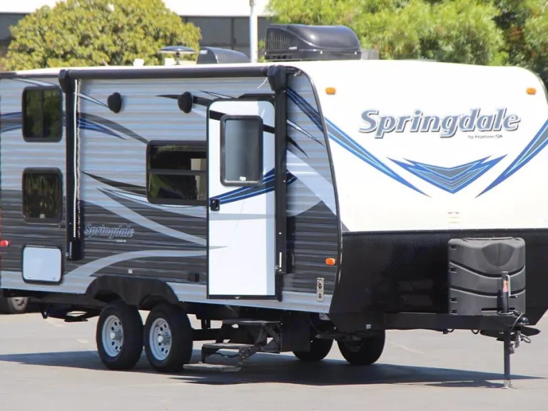 "Big Booty Judy" 2018 Springdale Pet Friendly Trailer Rental makes your vacation just a little easier. Sleeps 5 (RV Queen, bunk, sofa bed, and convertible dinette bed). She is stocked with all the essentials for a great trip!Judy has a full bathroom including indoor shower toilet & sink. The kitchen area provides you with a mini fridge (with freezer section included), a microwave, and a stove top with oven! We have a heater & AC unit to keep you comfortable in whatever climate you may experience. We have an electric awning with outdoor LED lights. We also have an indoor / outdoor speaker system that can be connected to by AUX cord or Bluetooth. Plenty of storage for all of your getaway gear.What we provide free of charge: