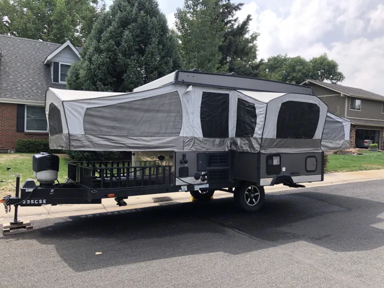 2016 Rockwood 23Scse Extreme Sports Package. Lifted and ready to get into the back country. Has a toy hauler front deck capable of carrying a full size ATV, 2 Dirt bikes or whatever else you want to put up there. One King bed, one Queen, both have heated mattresses. Dinette also turns into a bed for two children. Indoor and outdoor shower. Outdoor Grill and three burner stove inside.Can be towed by most SUV's