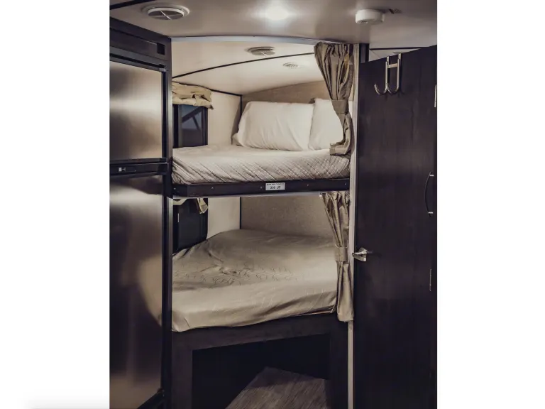 Like new Forest River bunk-house 26 ft Travel Trailer! Half-ton towable!You don't have to look that closely to see this one is on a different level than the other travel trailers on here...This trailer is perfectly suited for a romantic weekend for two or an extended road trip with a small family. Super-modern interior feels like a nice apartment instead of a typical wood-paneled rickety trailer. As nice as an Airstream, but much more functional.Excellent for boon-docking with double-sized propane tanks, extra battery, solar panel, and generator (extra).Main bedroom includes a Walk-Around queen murphy bed (keep that in mind! No crawling over each other in the middle of the night) and tons of storage.The Murphy bed folds up when not in use giving you much more space and a nice couch. The extra room this gives you is perfect if you are entertaining more than a couple of guests.The large slide-out dinette seats 6+ and converts to a bed that sleeps an extra 2 people. Huge frameless panoramic windows give tons of light and amazing views.Also- there are two double bunks in the back which sleep another 4 campers.The bathroom is very comfortable and the shower even has a large skylight ceiling.The trailer features a full sized fridge with separate freezer, a three burner gas range, a microwave and deep sink.Empty wastewater tanks prior to return. $50 fee if not empty at return.