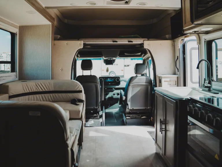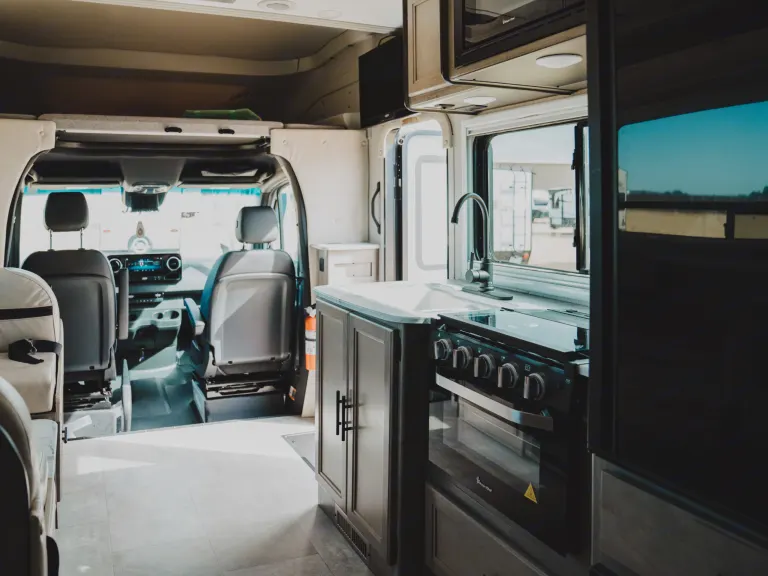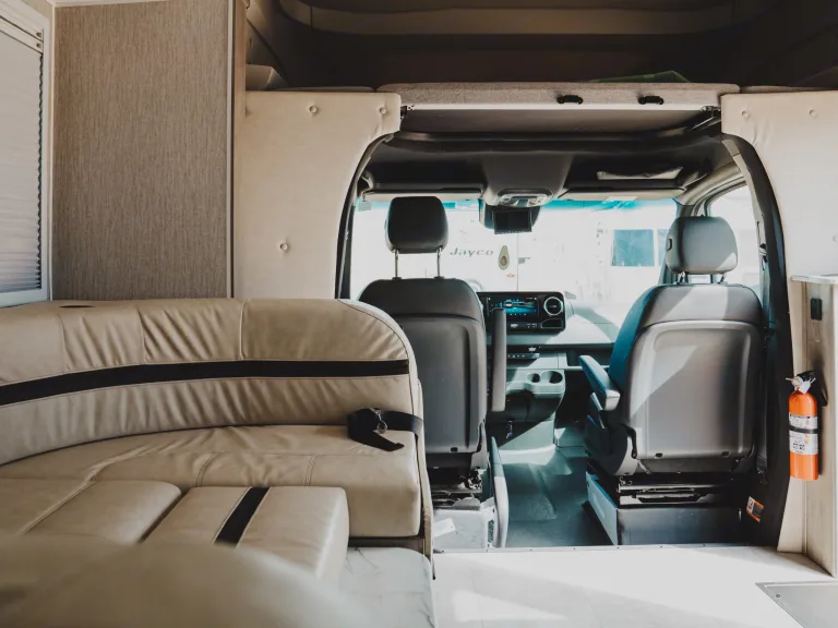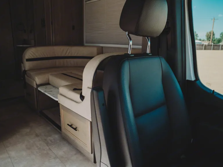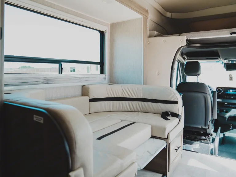 → Compact and Easy to Drive: Built on a Mercedes-Benz Sprinter chassis, this RV offers an effortless driving experience with excellent fuel efficiency.→ Comfortable Sleeping Arrangements: Sleeps up to four with a cozy queen-sized bed in the rear, an over-cab bunk, and a convertible dinette for added flexibility.→ Fully Equipped Kitchen: Includes a refrigerator, two-burner stove, convection microwave, and ample storage, allowing you to prepare delicious meals on the go.→ Bathroom with Shower: Features a shower, toilet, and sink for a home-like experience wherever you travel.→ Entertainment System: Enjoy a flat-screen TV, Bluetooth sound system, and DVD player for relaxation after a day of adventure.→ Exterior Awning: Create a shaded outdoor space with the power awning, ideal for enjoying Colorado's beautiful scenery.Included Amenities: