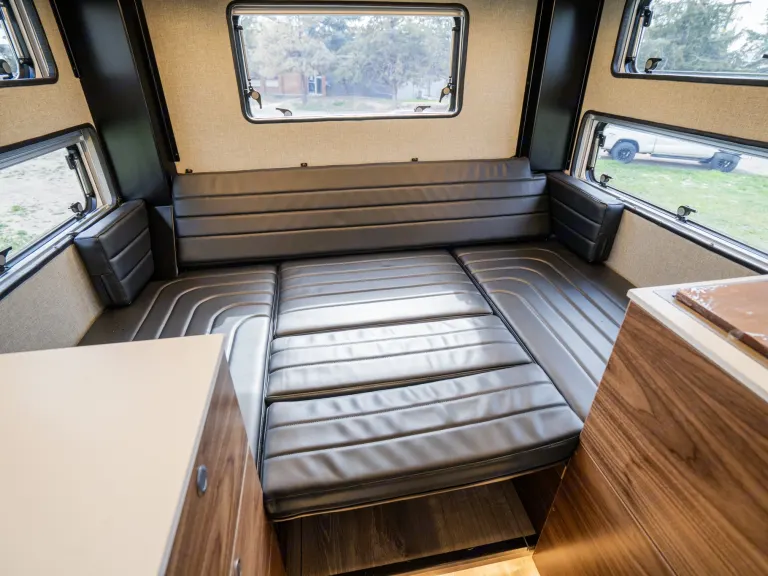 Built on a Ford F-350 chassis, this truck offers comfortable seating for 4 in the cab, contains a Queen size bed over truck cab w/ custom memory foam mattress, a leather dinette/bed conversion that sleeps 2 adult or two, a full galley with fridge/freezer combo, induction cooktop and residential size sink. The 30 gallon fresh water tank feeds the interior sink, interior shower and exterior shower, there is an AquaHot hydronic heat/hot water system, solar array, inverter & outlets to charge devices, and an upgraded lithium battery bank (and so much more!).ALL Rentals Must Remain ON Paved Roads AND ARE Strictly Prohibited From OFF-Road USE.