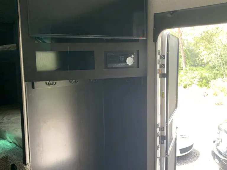 Brand new 2019 Jayco Eagle HT 29.5 foot Front Bunk Dual Slide 5th wheel. Updated kitchen, floors and bathroom. 2 sets of bunk beds for children. Near all Disney properties and close to Daytona Beach. Has outdoor kitchen area with fridge. Will include outdoor chairs and outdoor rug for under awning. Has 3 TVs in camper. 2 sliders. Nice master bedroom with tall ceiling. Lots of storage. Toilet separate from Shower and sink to accommodate more people. All cable lines included with all electrical hook ups as well.