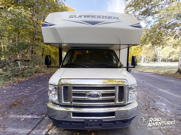 2022 Forest River Sunseeker 2850 Sunseeker Class C gas motorhome offers you quite a bit of sleeping space with its RV queen bed, kid's sofa sleeper, booth dinette, sofa, and 60" x 80"bunk over the cab. There is also a slide on this coach so that you can have more space for all of those travelers, and the great kitchen amenities, like the recessed three-burner range and convection microwave, will make it easy to feed all of those people. You will also have a full bathroom for everyone to use when they need to clean up, and the shower skylight will add some brightness to the bathroom. ]